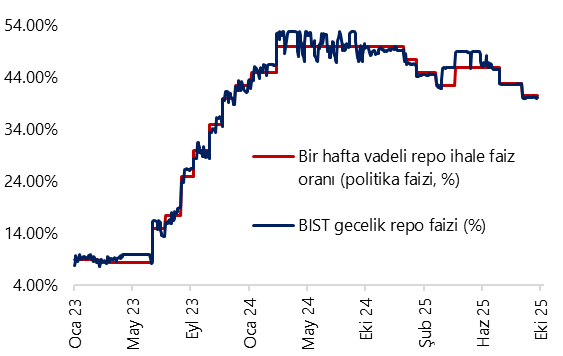 Politika Faizi & BIST Gecelik Repo Faizi (%)