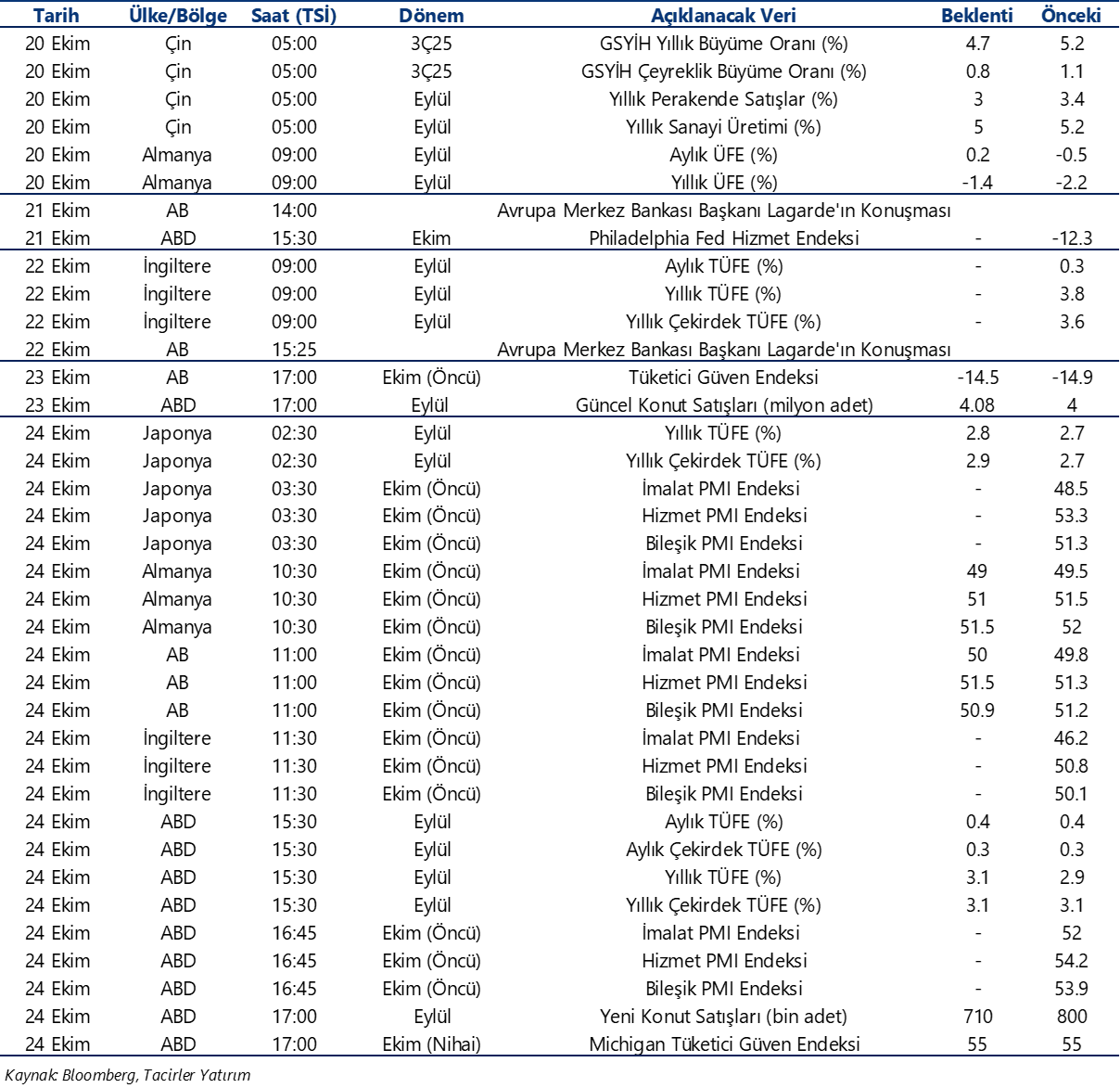 Ekonomik Veri Takvimi 20 – 24 Ekim