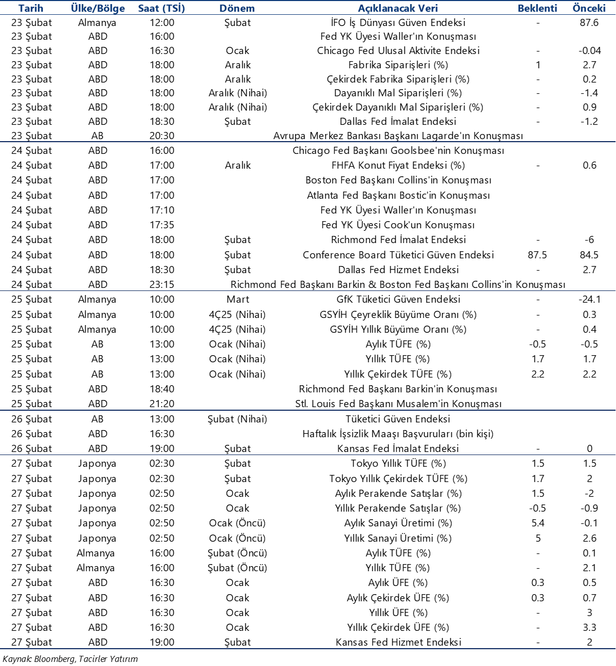 Ekonomik Veri Takvimi 23 – 27 Şubat