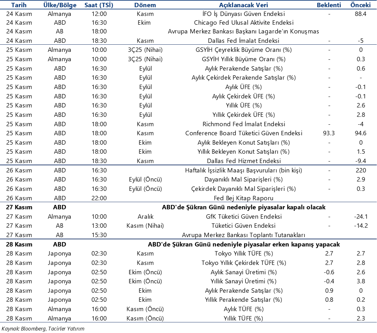 Ekonomik Veri Takvimi 24 – 28 Kasım