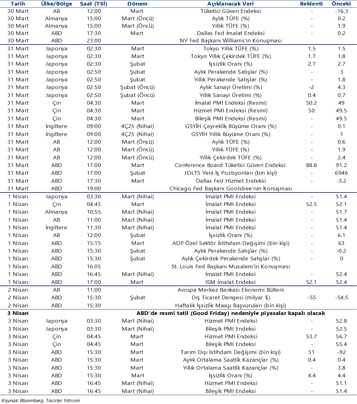 Ekonomik Veri Takvimi 30 Mart – 3 Nisan