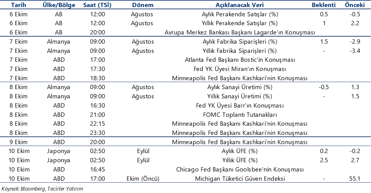 Ekonomik Veri Takvimi 6 – 10 Ekim