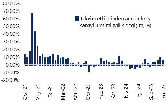 Takvim Etkilerinden Arındırılmış Sanayi Üretimi (yıllık değişim, %)