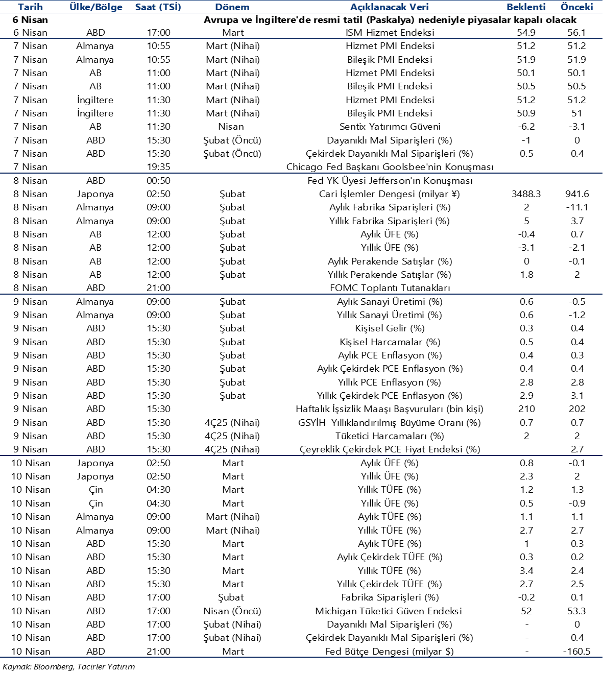 Ekonomik Veri Takvimi 6 – 10 Nisan