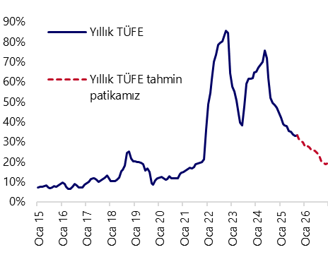 Yılın son iki ayında aylık enflasyonda beklediğimiz belirgin yavaşlama çerçevesinde 2025 yıl sonu TÜFE tahminimizi %29,7 seviyesinde koruyoruz. Ancak, tahminimize yönelik yukarı yönlü risklerin artmış durumda. Eylül enflasyon verilerinin, TCMB’nin faiz indirimlerinde daha temkinli bir patikada ilerlemesine yol açabilecek nitelikte olduğu görüşündeyiz. Faiz indirimlerinin devamını beklemekle birlikte, TCMB’nin indirim hızında yavaşlamaya gitmeyi değerlendirmesi beklenebilir.
