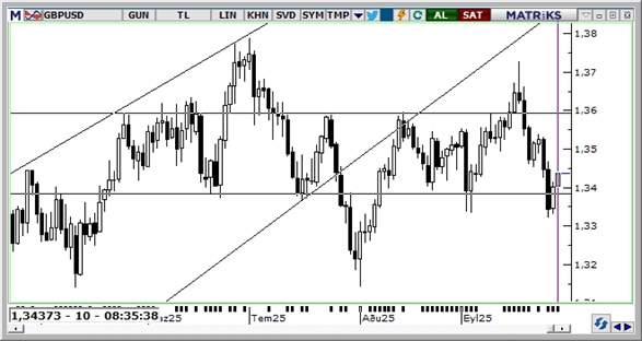 Teknik göstergelerin ürettikleri sinyaller doğrultusunda GBPUSD'nin kısa vadede 1,3450 – 1,3750 bandında hareket etmesini bekliyoruz. Trend ve momentum indikatörleri, 1,35 seviyesinin altına yaşanabilecek gerilemelerin kalıcı olayabileceğine işaret ediyor. GBPUSD’de 1,3270 ve 1.3320 seviyeleri destek, 1,3460 ve 1,3525 ise direnç konumunda yer alıyor.