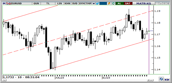 Paritede haftalık grafikte net bir yükselen kanal formasyonu görülüyor. Kanalın alt bandından gelen tepki, önümüzdeki süreçte 1,20 seviyesinin üzerinde bir hareketin hedeflenebileceğine işaret ediyor. Teknik göstergeler, kısa vadede 1,17 seviyesinin altında kalıcı bir geri çekilmenin zor olduğunu gösterirken, ilerleyen dönemde 1,20’nin üzerine doğru ivmelenme potansiyelinin korunduğunu ortaya koyuyor. 1,1680 ve 1,1612 destek; 1,1780 ve 1,1810 direnç olarak yer almakta.