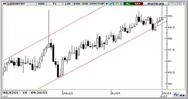 Parite 46,5 – 49,25 bandındaki hareketini sürdürürken, 48,50 seviyesinin altına doğru olası geri çekilmelerin sınırlı kalacağı, bu seviyenin altında ise 48,20 desteğinden güçlü tepki alımlarıyla toparlanma ihtimalinin yüksek olduğu değerlendirilmektedir. Teknik göstergeler, kısa vadede fiyatlamaların 48 – 49,50 aralığında dalgalanma eğilimini koruyabileceğini işaret ederken, kurda yukarı yönlü trendin kademeli şekilde devam edeceği bekliyoruz. EURTRY’de 48,20 ve 48,15 seviyeleri destek, ve 49,20 seviyesi ise direnç konumunda yer alıyor.