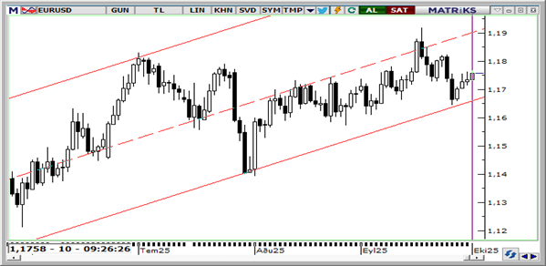 Paritede haftalık görünümde belirgin bir yükselen kanal formasyonu öne çıkarken, alt banttan gelen alımların 1,20 seviyesinin üzerinde hareket potansiyelini güçlendirdiği görülmektedir. Teknik indikatörler, kısa vadede 1,17 seviyesinin altında kalıcı bir geri çekilme olasılığının düşük olduğunu, orta vadede ise 1,20 seviyesinin aşılması yönündeki ivmelenme ihtimalinin korunduğunu göstermekte. 1,1680 ve 1,1612 destek; 1,1780 ve 1,1810 direnç olarak yer almakta.