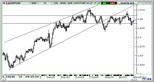 Teknik indikatörlerden elde edilen sinyaller, GBPUSD’nin kısa vadede 1,3450 – 1,3750 aralığında hareketini koruyabileceğine işaret etmektedir. Trend ve momentum göstergeleri ise 1,35 seviyesinin altına sarkmaların kalıcılık kazanabileceğini ortaya koyuyor. GBPUSD’de 1,3270 ve 1.3320 seviyeleri destek, 1,3525 ise direnç konumunda yer alıyor.