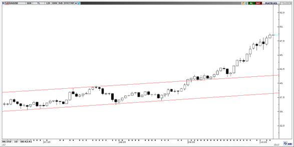 Gümüşte yukarı yönlü eğilim sürerken, trend ve momentum göstergeleri kısa vadede 46$ seviyesinin üzerindeki istikrarın korunduğuna işaret ediyor. Fiyatın 46$ direncini aşarak bu seviyeyi destek konumuna çevirmesi, yükseliş ivmesinin güçlendiğini teyit ediyor. Destekler, 46,80$ ve 46,60$ olarak; direnç ise 48,75$ seviyesi olarak takip edilebilir.