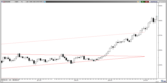 Altın’da orta–uzun vadeli pozitif görünüm korunuyor. Parite, daha önce belirtilen 3.700–4.000 bandının üst sınırını güçlü bir momentumla yukarı yönlü kırdı. Teknik göstergeler, 3.900$ seviyesinin altına kalıcı bir geri çekilme olasılığının düşük olduğunu gösteriyor. Aşağı yönlü düzeltmelerde 3.880$, 3.820$ ve 3.800$ seviyeleri kısa vadeli destek alanları olarak öne çıkıyor. Bu çerçevede, geri çekilmeleri sınırlı görmekte ve alım fırsatı olarak değerlendiriyoruz. Güçlü talep ve faiz indirimi beklentileriyle yeni hedeflerin artık 4.000 doların üzerinde oluştuğu görülüyor. Direnç olarak ise 4100$ takip edilebilir.