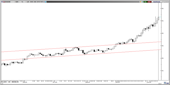Gümüşte devam eden yukarı yönlü hareket, trend ve momentum göstergeleryile destekleniyor. Kısa vadede 47$ seviyesinin üzerindeki istikrarın korunduğu görülürken, fiyatın 46$ direncini aşarak bu seviyeyi destek konumuna çevirmesi, yükseliş eğiliminin güç kazandığını teyit ediyor. Destekler, 47,70$ ve 48,80$ olarak; direnç ise 52,5$ seviyesi olarak takip edilebilir.