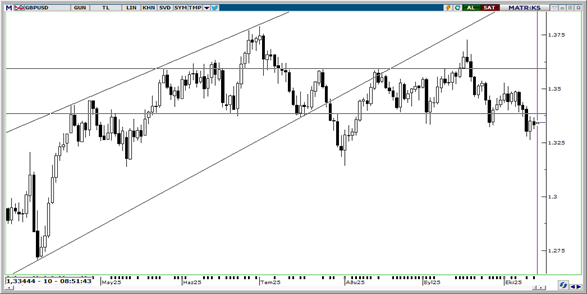 Teknik göstergeler, GBP/USD paritesinin kısa vadede 1,3450–1,3750 aralığında yatay seyir eğilimini sürdürdüğünü gösteriyor. Trend ve momentum indikatörleri, 1,35 seviyesinin altına yaşanabilecek olası geri çekilmelerde kalıcılık riskinin artabileceğine işaret ederken, genel teknik görünümün nötr eğilimini koruduğu değerlendiriyor. Paritede 1,3250 ve 1,3170 destek; 1,3525 ilk direnç.