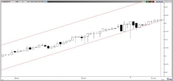 Günlük grafikte devam etmekte olan yükseliş kanalı, USD/TRY’de kademeli yükseliş eğiliminin korunduğuna işaret ediyor. Trend ve momentum indikatörleri, kurda yakın vadede 42 seviyesi altında kalıcı bir düşüşün zor olduğunun ve yıl sonuna kadar 42 – 44 bandının ön planda olabileceğinin sinyalini veriyor. Kurda 42 ve 41,85 seviyelerini kısa vadeli destek olarak takip ediyoruz.