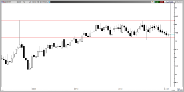 Euroda son dönemde izlenen sert geri çekilmenin ardından kurun 48,30 seviyesinin altına kadar gerilediği görülüyor. Günlük grafikte yatay bant hareketinin korunduğu paritede, 48,20 – 49,25 bandı içerisindeki dalgalanma sürüyor. Teknik göstergeler, bandın alt sınırına denk gelen 48,20 civarından tepki alımlarının gelebileceğine işaret ediyor. Kurda 48,20, 47,55 ve 47,15 seviyeleri kısa vadeli destek; 48,70 ve 49,00 ise direnç seviyeleri olarak takip edilebilir.