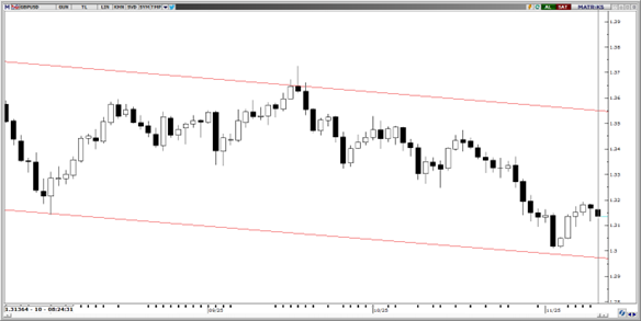 Dolar endeksinde izlenen geri çekilme ile birlikte düşüş kanalının alt çizgisinden destek bulan paritede, yukarı yönlü eğilimin devamını izliyoruz. Teknikgörünüm, 1,30 seviyesinin altında kalıcılığın sınırlıolduğunu ve 1,35 seviyesindeki üst banda doğru yukarıyönlü eğilimin devam edebileceğini gösteriyor. 1,3200,1,3240 ve 1,3320 direnç; 1,2950’nin altına sarkılmasıhalinde ise 1,29 ve 1,2860 seviyeleri destek olarakizlenebilir.