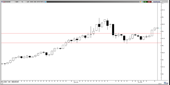 Parite, 48,95 seviyesinde hareketini sürdürürken aynı zamanda yatay kanalın direncine doğru hareketini sürdürüyor. Paritenin kısa vadede 47,5 – 50 bandında hareket etmesini. Daha sonrasında kendisini 50 seviyesi üzerine atmasını bekliyoruz. Teknik göstergeler, kanalın üst bandına tekabül eden 49,25 seviyesinin geçilmesiyle beraber 50 seviyelerine doğru hareketin devam edebileceğini gösteriyor. Kurda 48,75, 48,40 ve 48,20 seviyeleri kısa vadeli destek; 49,50 ve 49,00 ise direnç seviyeleri olarak takip edilebilir.