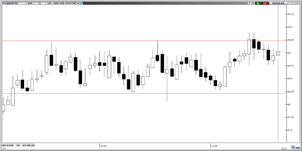 Parite bu sabah 49,00 seviyelerinden işlem görüyor. Paralel kanal bantlarını ihlal etmeden yatay hareketine devam eden paritede, teknik göstergeler doğrultusunda kısa vadede 47,50 – 50,00 bandında bir hareket bekliyoruz. Teknik görünüm, kanalın üst bandının kırılımı durumunda ise paritenin momentumlu bir şekilde 50 seviyelerine hareketinin olası olduğunu bizlere gösteriyor. Kurda 48,75, 48,40 ve 48,20 seviyeleri kısa vadeli destek, 49,50, 49,75 ve 50,00 seviyeleri ise direnç olarak takip edilebilir.