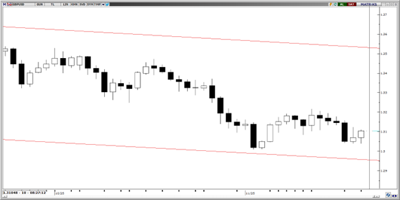 Parite bu sabah 1,3100 seviyeleri olan kanal desteğinde konsolide olmaya devam ediyor. Teknik indikatörler paritenin 1.2960 seviyelerinden kendisine destek alıp, kanal direncine doğru yukarı yönlü hareketin gerçekleşebileceğini bizlere gösteriyor. Paritede 1,3170, 1,3200 ve 1.3250 direnç seviyeleri; 1,3000, 1,2970 ve 1,2890 ise destek seviyeleri olarak takip edilebilir.