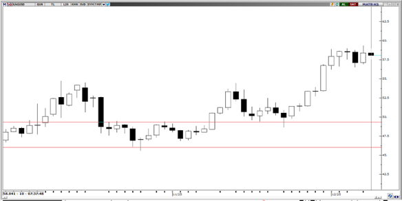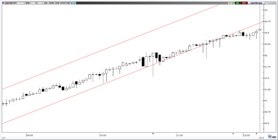 Parite bu sabah 42,58 seviyelerinden işlem görüyor. Geçtiğimiz hafta tüm zamanların en yüksek seviyesini tekrardan tazeleyen parite kanal desteğinin hemen altında yükselen hareketine devam ediyor. Teknik göstergeler orta vadede hareketin 42,00-44,00 arasında devam edebileceğini gösteriyor. 42,50 seviyesi destek olarak takip edilebilir.