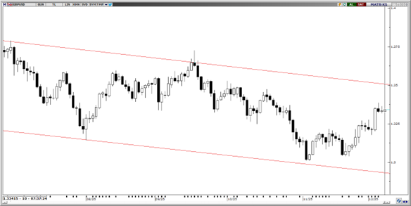 Parite bu sabah 1,1655 seviyesinden işlem görüp, konsolide hareketine devam ediyor. Kanal direncini kırdıktan sonra yükselişi hızlanan paritede teknik göstergeler. 1,1655 seviyesinin üzerindemum kapanışları gerçekleştirebildiği halde, yukarı yönlü hareketin 1,1750 bölgesine kadar devam edebileceğini gösteriyor. 1,1630, 1,1590 ve 1,1550 seviyeleri destek; 1.1685, 1,1730 ve 1,1750 seviyeleri direnç olarak izlenebilir.