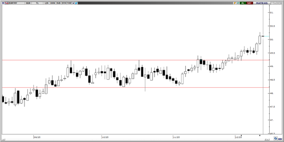50,00 seviyesini kıran parite, bu seviyeyi destek olarak kullanmaya çalışıyor. Teknik göstergeler fiyatın 50,00 seviyesi üzerinde kalıcılığını sağlayabildiği taktirde fiyatın 50,50 seviyelerine kadar hareketine devam edebileceğini gösteriyor. 49,70, 49,50 ve 49,25 seviyeleri destek; 50,50 seviyesi ise direnç olarak izlenebilir.