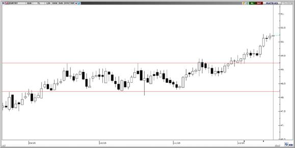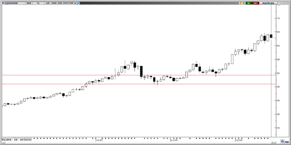 EUR/TRY bu sabah 50,25 seviyelerinden işlem görüyor. Teknik göstergeler, fiyatta yaşanabilecek olası geri çekilmelerde 49,75 seviyesinden destek bulabileceğine işaret ediyor. 50,00, 49,70 ve 49,50 seviyeleri destek; 50,50 seviyesi ise direnç olarak takip edilebilir.