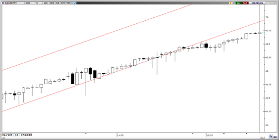 Kanal alt bandının hemen altında yukarı yönlü hareketine devam eden parite 42,70 seviyelerinden işlem görüyor. Teknik indikatörler, yukarı yönlü hareketin yakın vadede 42-44 aralığınca gerçekleşme ihtimalinin kuvvetli olduğunu gösteriyor. Geri çekilme yaşanması durumunda 42,52, 42,40 ve 42,34 seviyeleri destek olarak Takip edilebilir. Direnç seviyesi olarak 42,85 seviyesi izlenebilir.