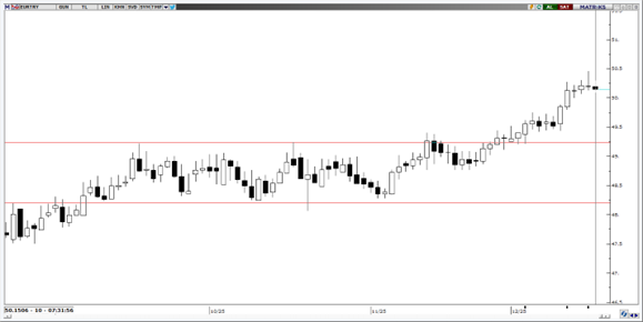 50,45 seviyesi ile tarihi zirvesini gören EURTRY için teknik göstergeler, Fiyatta yaşanabilecek olası geri çekilmelerin 49,75 seviyesinin altında kalıcı olma ihtimalinin güç olduğuna işaret ediyor. 50,00, 49,70 ve 49,50 seviyeleri destek; 50,50 seviyesi ise direnç olarak takip izlenebilir.