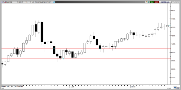 4.300–4.350 bandında konsolidasyon sürecini sürdüren altın için teknik göstergeler, yukarı yönlü eğilimin korunabileceğine ve fiyatın tarihi zirve seviyesi olan 4.381 düzeyini yeniden test etme potansiyeline işaret etmekte. Olası geri çekilmelerde ise 4.240 seviyesinin altına kalıcı fiyat hareketlerinin gerçekleşme ihtimalinin güç olduğuna işaret ediyor. Altında 4.240, 4.140 – 4.085 seviyeleri destek, 4.335 ve 4.380 seviyeleri ise direnç olarak takip edilebilir.