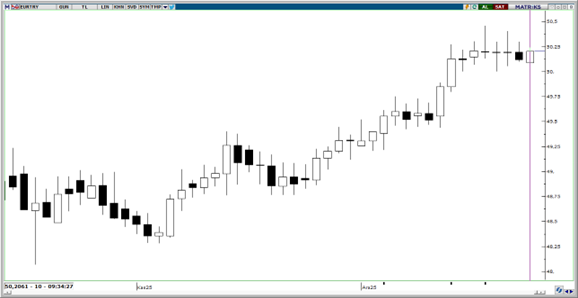 Yeni haftaya 50 seviyesinin hemen üzerinde başlayan EURTRY’de, teknik göstergeler kısa vade için 50 seviyesi üzerinde bir tutunma çabasının ön planda olabileceğini gösteriyor. EURTRY’de 50,15, 50 ve 49,90 seviyeleri kısa vadeli destek konumunda. Yukarıda ise 50,30 seviyesini direnç olarak takip ediyoruz. Teknik göstergeler, yakın vadede kademeli yükseliş eğiliminin devamına işaret ediyor.