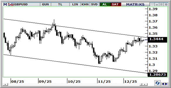 İngiltere Merkez Bankası’nın faiz indiriminin ardından GBPUSD paritesi 1,33 seviyesinin üzerinde dengelenirken, teknik görünüm kısa vadede 1,3320’den geçen 100 günlük hareketli ortalamanın üzerinde kalınabileceğine işaret ediyor. Öte yandan, günlük grafikte devam eden düşüş kanalı, 1,3450 civarından geçen kanal direncinin olası tepki satışları açısından izlenmesi gerektiğini gösteriyor. Teknik sinyaller doğrultusunda, kısa vadede paritenin 1,3320 – 1,3450 bandında işlem görmesini bekliyoruz. GBPUSD’de 1,3370, 1,3335 ve 1,3290 seviyeleri destek; 1,3420, 1,3450 ve 1,35 seviyeleri ise direnç olarak öne çıkıyor.