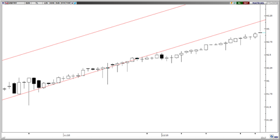 Tarihi zirve seviyesini tazeleyerek haftaya başlayan parite için teknik göstergeler, yukarı yönlü hareketin devam etme ihtimalinin kuvvetli olup, fiyatın 42,75 seviyesinin altına yapacağı hareketlerin kalıcı olmakta zorlanacağını gösteriyor. 42,50, 42,40 ve 42,34 seviyeleri destek; 43,00 ise direnç olarak takip edilebilir.