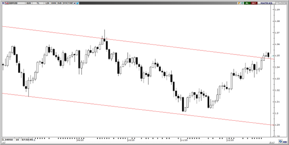 Kanal üst bandını kendisine destek olarak belirlemeye çalışan parite 1,3485 seviyelerinden kendine güç toplama arayışında. Teknik göstergeler, paritenin bu seviyeyi destek olarak kullanması durumunda yukarı yönlü hareketine 1,3600 seviyesine kadar devam etme ihtimalinin kuvvetli olduğunu gösteriyor. 1,3370, 1,3335 ve 1,3290 seviyeleri destek; 1,3550 ve 1,36 seviyeleri ise direnç olarak izlenebilir.
