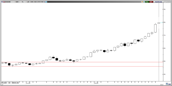 Gümüş yaşanan volatil hareket sonucunda yeni tarihi zirve seviyesini 84$’a çıkarmış durumda. Teknik göstergeler, gümüşte yukarı yönlü trendin korunduğuna işaret ederken, olası geri çekilmelerin düzeltme ile sınırlı kalma ihtimalinin kuvvetli olduğuna işaret ediyor. Olası geri çekilmelerde 75$, 73$ ve 71$ seviyeleri destek olarak izlenebilecekken; 84$ seviyesi ise direnç konumunda.