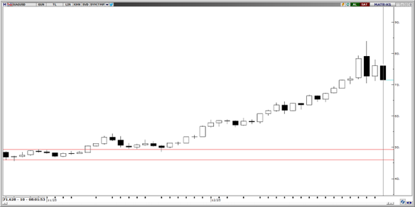 50,50 seviyesinden yukarı yönlü tepki alan parite, yön arayışına devam ediyor. Teknik göstergeler, fiyatın 50,50 seviyesi üzerinde kalıcılık sağlaması durumunda yukarı yönlü hareketine 51,50 seviyesine kadar devam etme ihtimalinin güçlü olduğunu gösteriyor. 50,00, 49,50 ve 49,25 seviyeleri destek; 50,75 ise direnç olarak izlenebilir.