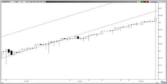 Yukarı yönlü trendine devam eden parite için teknik indikatörler, yakın vadede yukarı yönlü hareketin devam etme ihtimalinin güçlü olduğu gösteriyor. 43,50 direnç; 42,50, 42,40 ve 42,34 seviyeleri destek olarak izlenebilir.