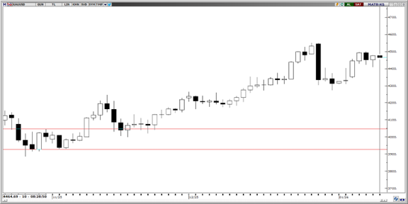 Altın 4.500$ seviyesinde karşılaştığı direnç seviyesinin hemen altında işlem görmeye devam ediyor. Teknik göstergeler, fiyatın bu seviye üzerine kalıcılığını sağlayabilmesi durumunda yeni tarihi zirveler görme ihtimalinin muhtemel olduğuna işaret ediyor. Devam eden yükseliş kanalı kısa vadede 4.300 – 4.600 seviyeleri arasında hareket ihtimaline işaret ediyor. Altında 4.330$, 4.270$ ve 4.200$ seviyeleri destek, 4.480$ ve 4.550$ seviyeleri ise direnç olarak takip edilebilir.