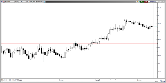 50,25 seviyesinden aldığı destekle tutunma eğilimi gösteren parite, yukarı yönlü seyrini koruma çabasında. Mevcut teknik görünüm, 50,25–50,00 bant aralığında oluşabilecek alım tepkilerinin fiyatı yeniden yukarı taşıma potansiyelinin yüksek olduğuna işaret etmekte. Bu çerçevede, kısa vadede yukarı yönlü momentumun devam etmesi olası görünmekte. 50,00, 49,50 ve 49,25 seviyeleri destek; 50,75 ise direnç olarak izlenebilir.
