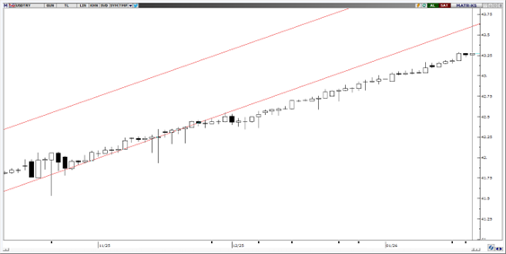 Yukarı yönlü eğilimini koruyan USDTRY için teknik göstergeler, kısa vadede 43,50 seviyesine kadar yukarı yönlü hareketin devam etme ihtimalinin kuvvetli olduğunu gösteriyor. Aşağıda 42,50 seviyesi ilk destek konumunda izlenirken, bu seviyenin altında 42,40 ve 42,34 destekleri takip edilebilir.