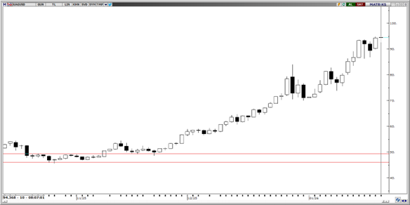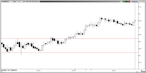 50,25–50,00 aralığından kendine destek bulan parite yukarı yönlü hareketine momentumlu bir şekilde devam ediyor. Teknik göstergeler, fiyatın ilk olarak 50,75 seviyesini kırması ve üzerinde kalıcılık sağlayabilmesi halinde, yukarı yönlü hareketine 51,50 sevyiesine kadar sürdürebileceğini gösteriyor. 50,00, 49,50 ve 49,25 seviyeleri destek; 50,75 ve 51,50 seviyeleri direnç olarak takip edilebilir.