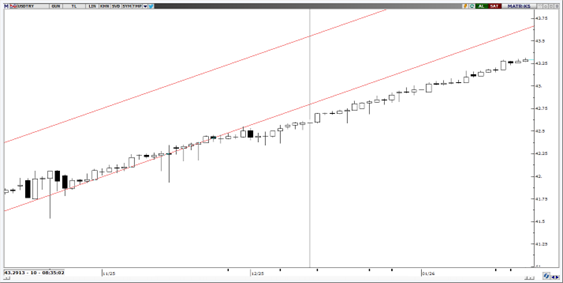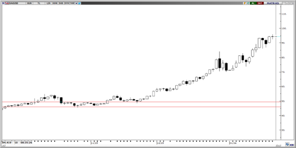 Yukarı yönlü hareketine momentumlu şekilde devam eden parite bu sabah 50,75 seviyesinden işlem görmeye devam ediyor. Teknik göstergeler, fiyatın 50,75 seviyesi üzerinde kalıcılık sağlayabilmesi durumunda, momentumlu hareketin 51,50 seviyesine kadar devam etme ihtimalinin kuvvetli olduğunu gösteriyor. 50,00, 49,50 ve 49,25 seviyeleri destek; 50,75 ve 51,50 seviyeleri direnç olarak takip edilebilir.