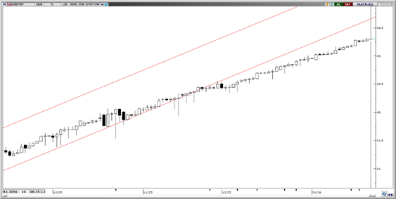 USDTRY paritesinde yukarı yönlü ana trendin korunduğu izlenmekte. Teknik görünüm, kısa vadede 43,50 seviyesine doğru yükseliş eğiliminin devam edebileceğine işaret ederken, olası geri çekilmelerde 42,50 seviyesi kritik destek olarak öne çıkmakta. Bu seviyenin altında ise 42,40 ve 42,34 seviyeleri izlenecek alt destek bölgeleri konumunda.