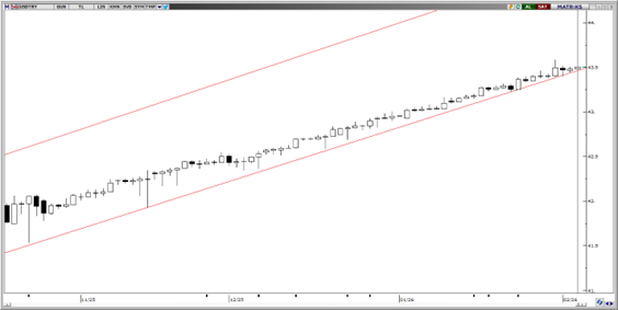 USD/TRY paritesi yukarı yönlü ana trendini koruyor. Olası geri çekilmelerde 42,50 seviyesi, teknik görünümün bozulmaması açısından kritik bir denge noktası olarak öne çıkıyor. Bu seviye üzerinde kalındığı sürece ana eğilimin korunuyor olması ve yükseliş yönlü beklentilerin geçerliliğini sürdürüyor olması bekleniyor. 42,50’nin aşağı yönlü kırılması hâlinde ise 42,40 ve 42,34 seviyeleri bir sonraki destek alanları olarak izlenecek.