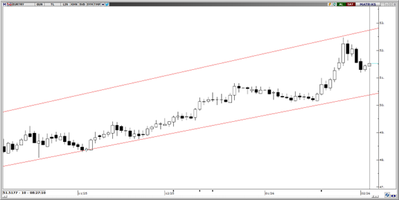 Paritenin yükselen kanal yapısı içinde direnç bölgesinden uzaklaşarak 51 seviyesine doğru kontrollü bir geri çekilme süreci izlediği görülüyor. Teknik çerçevede 51 bölgesi, kısa vadede fiyatın denge arayışına girebileceği önemli bir referans alanı olarak öne çıkarken, mevcut hareketin ana trend üzerinde henüz belirgin bir zayıflamaya işaret etmediği değerlendiriliyor. Aşağı yönlü hareketlerde 51,00, 50,50 ve 50,00 bandı destek bölgesi olarak izlenirken, yukarı yönlü hareketlerde 52,00 ve 52,50 seviyeleri kısa vadeli direnç alanları olarak öne çıkıyor.