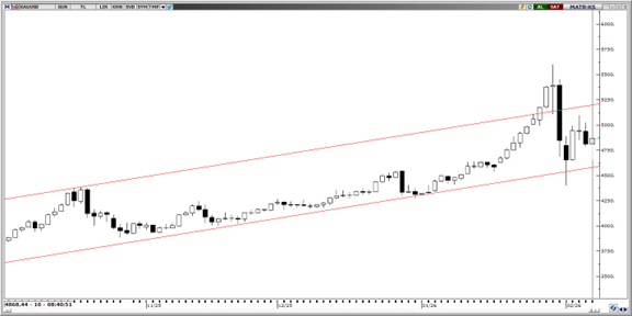 Altın fiyatlamasının 5.100 seviyesi çevresinden gelen tepki satışlarıyla birlikte yükselen kanalın alt bandına doğru hareketine devam ettiği izleniyor. günlük kapanış bazında 4.650 desteğini takip ediyoruz. Bu seviye altına inişler görülebilir ancak günlük kapanışların bu seviye üzerinde oluşmaya devam etmesi yükseliş denemelerinin devamını beraberinde getirebilir. 4000-4650 bandı destek bölgesi olarak kritik bir rol oynarken, 4650 üstü günlük kapanışlar yükseliş hareketinin devam etmesi için önem arz ediyor. Aşağıda 4.800$ ve 4.720$ seviyeleri destek; olası tepki hareketlerinde ise 5.200$, 5.250$ ve 5.400$ seviyeleri direnç olarak takip edilebilir.