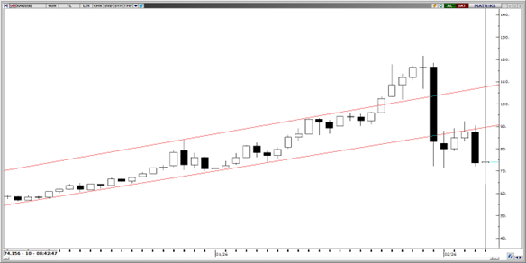 Tahminlerimiz paralel olarak 91 93 bölgesinin direnç olarak çalıştığı gümüşte geri çekilmenin ardından, 65 seviyesi çevresinde destek bulunduğu ve bu bölgeden gelen tepki alımlarıyla fiyatlamanın 75 seviyesine kadar toparlandığı izleniyor. Teknik görünümde 91–93 bandının güçlü direnç bölgesi olmay
