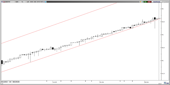 Paritede yukarı yönlü ana trend korunurken, fiyatlama sabah saatleri itibarıyla kanal desteğiyle örtüşen 43,60 bandında dengeleniyor. Aşağı yönlü düzeltmelerin şimdilik sınırlı kaldığı görülüyor. Teknik görünüm, alım yönlü eğilimin gücünü koruduğuna işaret ederken, 42,50 seviyesi trendin devamı açısından kritik eşik konumunda bulunuyor. 42,50’nin aşağı yönlü kırılması hâlinde ise 42,40 ve 42,34 seviyeleri bir sonraki destek alanları olarak takip edilebilir. Yukarıda ise 43,70 kısa vadeli direnç konumunda.