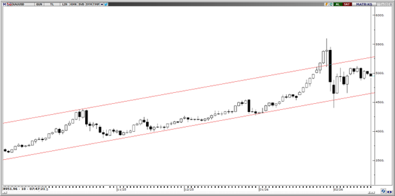 Altında yükselen kanal içindeki hareket sürerken, kanal alt bandına yönelik geri çekilmelerde ivme zayıflıyor. Teknik göstergeler 4.600$–4.650$ bölgesinin güçlü destek konumunda olduğuna işaret ediyor. Bu banttan gelebilecek tepki alımları, ana trendin korunması açısından kritik olacaktır. Aşağıda 4.950$, 4.910$ ve 4.850$ seviyeleri ara destekler olarak izlenirken; daha aşağıda 4.650$–4.000$ bandı ana destek bölgesi olarak öne çıkıyor. Yukarı yönlü hareketlerde ise 5.100$, 5.180$ ve 5.250$ seviyeleri direnç olarak öne çıkmakta.